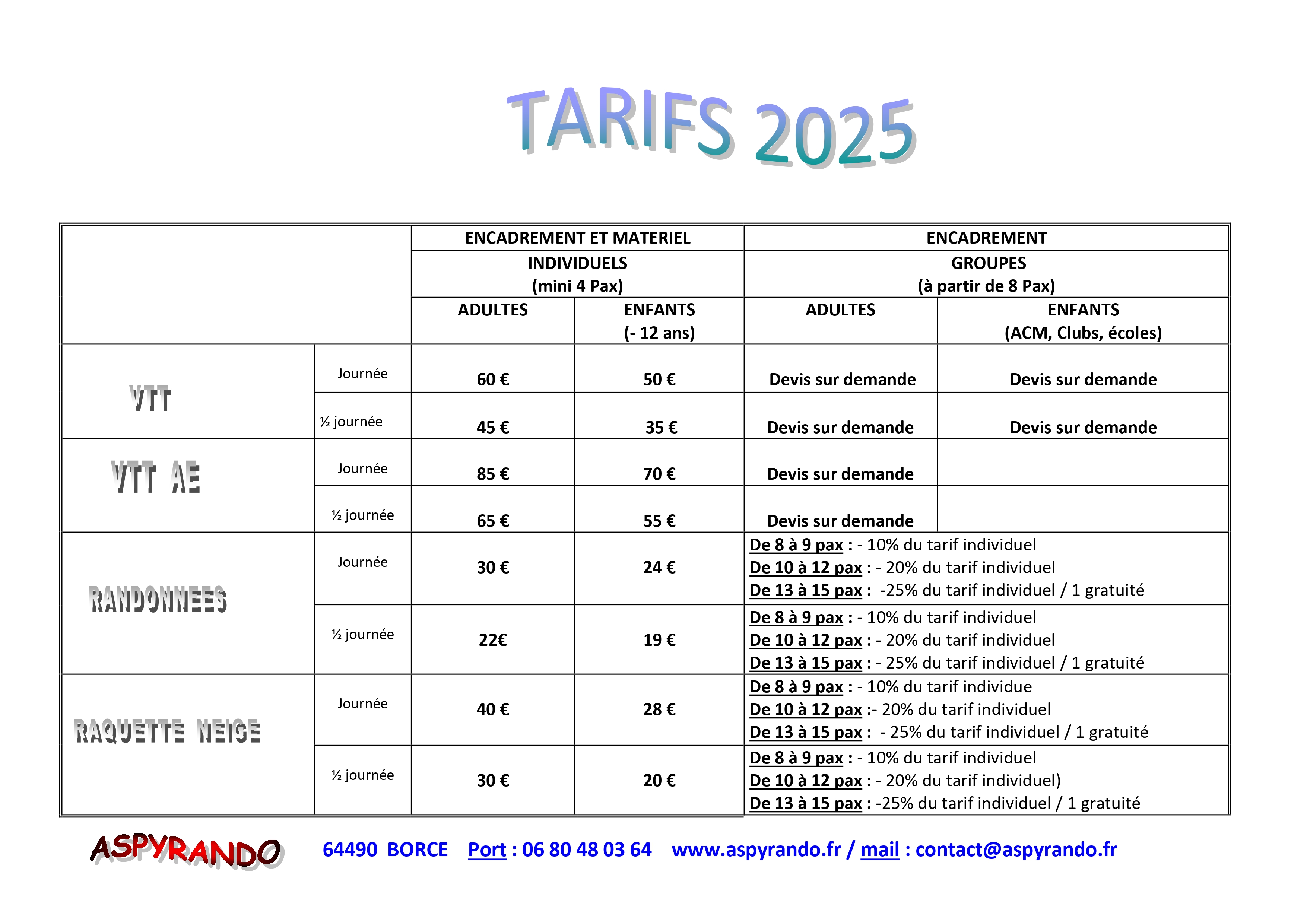 Vous pouvez télécharger la grille de tarifs les en
